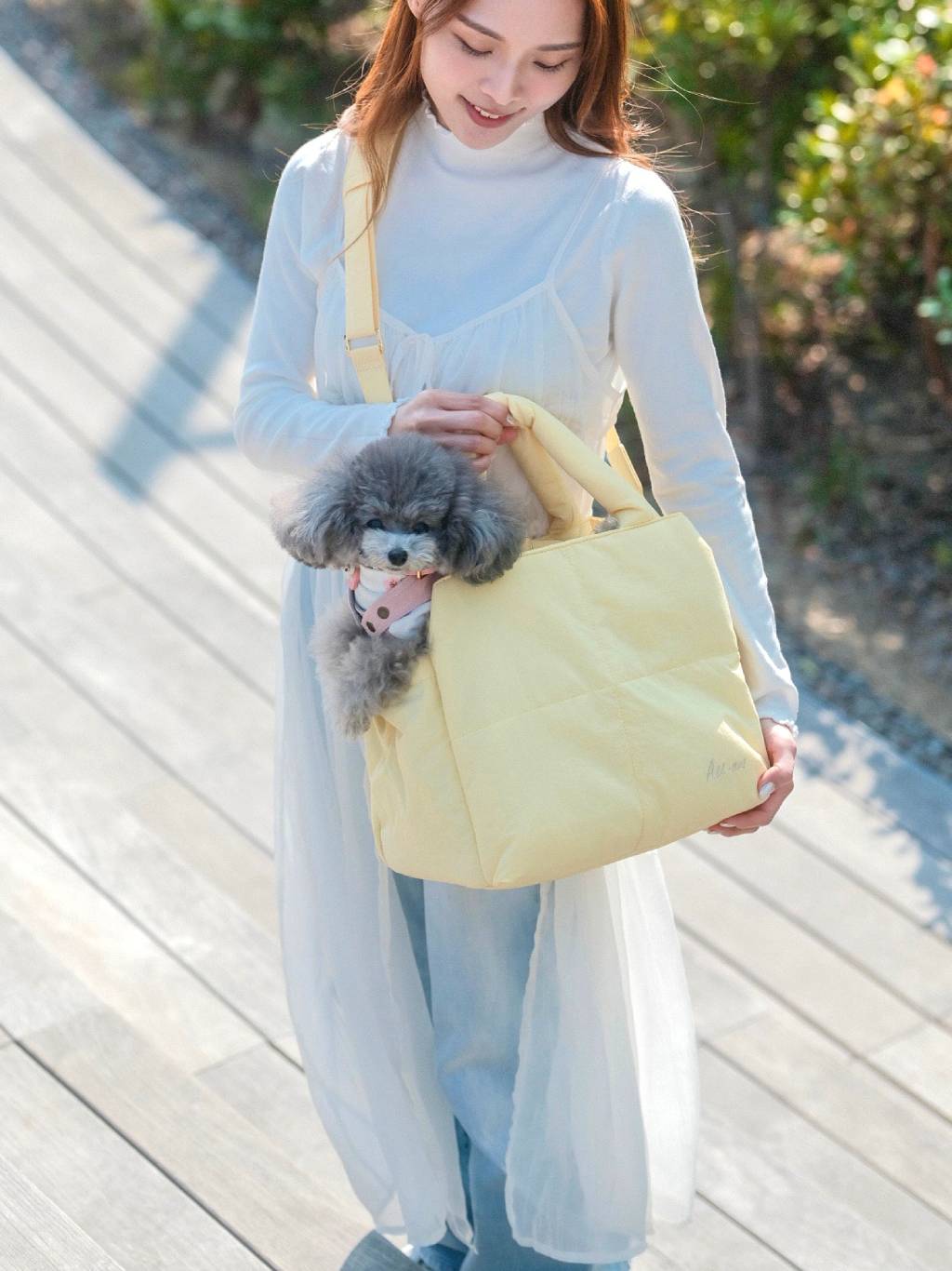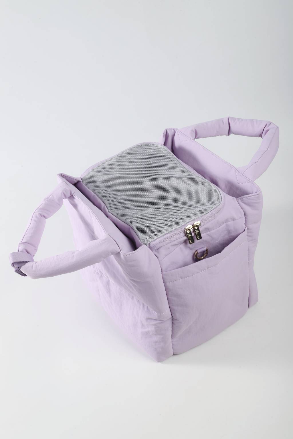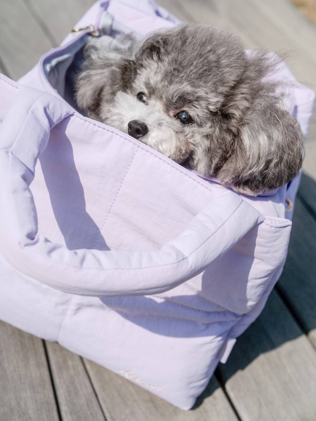 厚泡棉絎縫而成,寵物觸感舒服。底部有堅固的板子,支撐寵物的重量,讓寵物坐得舒適而不下沉。配有蓬鬆手柄以及肩帶墊子,主人攜帶非常舒適。