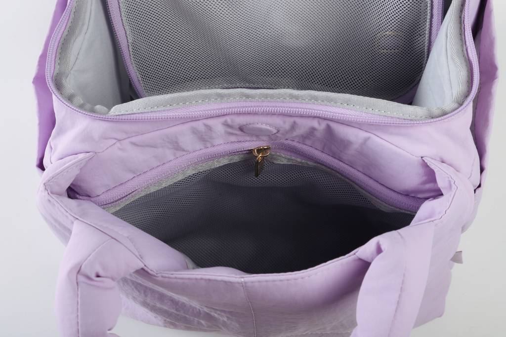 使用國際認可的再生尼龍防潑水面料,奢華順滑且輕便。