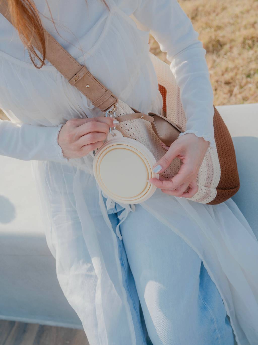 With its stylish curved design, the capacity is impressive! The bag can accommodate two water bottles, an umbrella, wet wipes, phone, wallet, snacks, and more! - Thoughtful Features